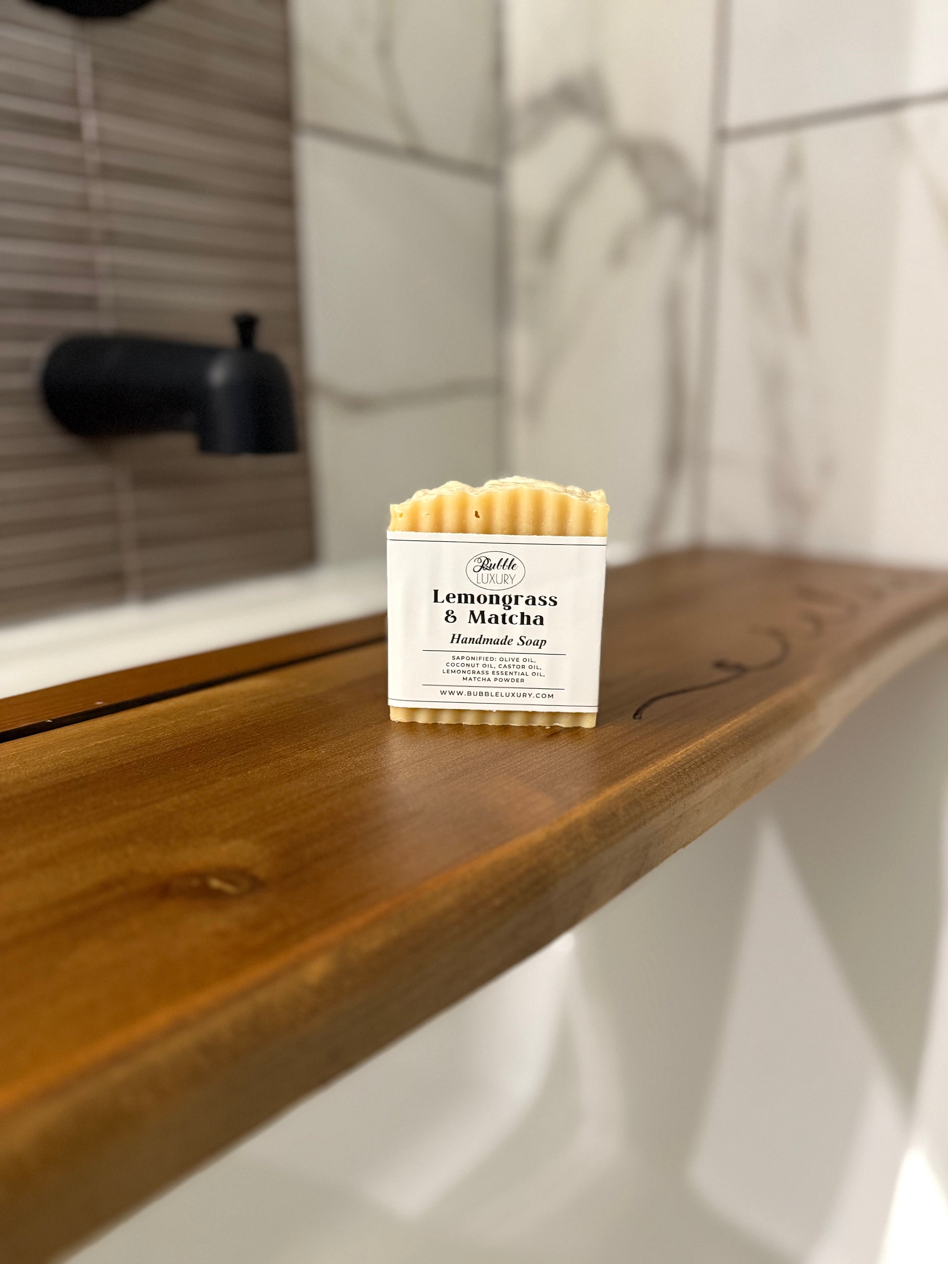 Awaken your senses with our handcrafted Lemongrass & Matcha soap, made using the traditional cold process method for a rich, skin-loving lather. This invigorating soap blends saponified olive oil, coconut oil, and castor oil for a gentle yet effective cleanse, while lemongrass essential oil delivers a crisp, citrusy aroma that energizes your day.